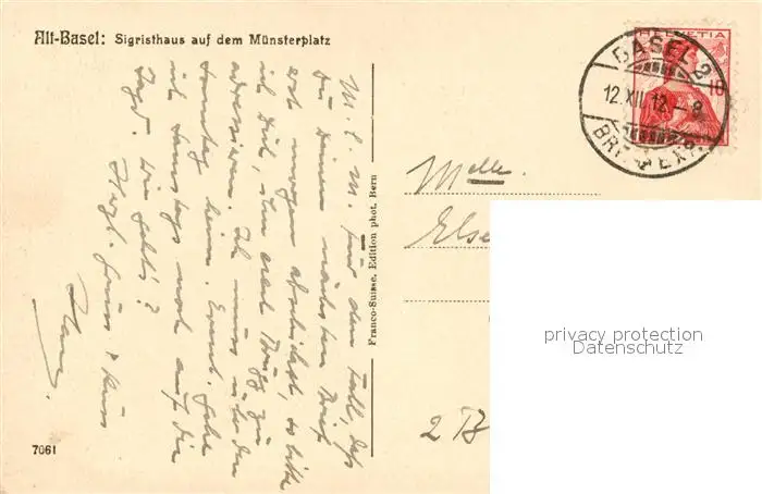 Alt_Basel_BS Muensterplatz Sigristhaus Alt_Basel_BS postalisch gelaufen 1912 Erhaltung siehe scans [WerneD78] WernPID7