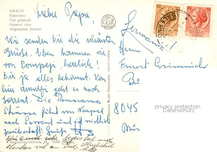 Amalfi Panorama Amalfi postalisch gelaufen nach 1965 Erhaltung siehe scans [WerneD78] WernPID7