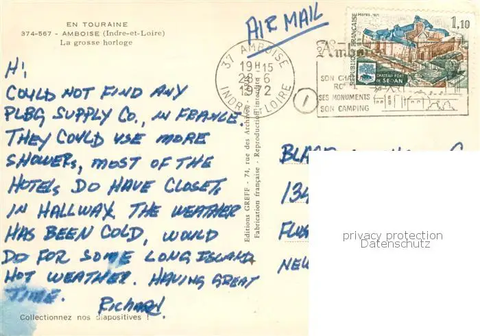 Amboise_37 La grosse horloge postalisch gelaufen 1972 Erhaltung siehe scans [LiesaD40] LiesID40