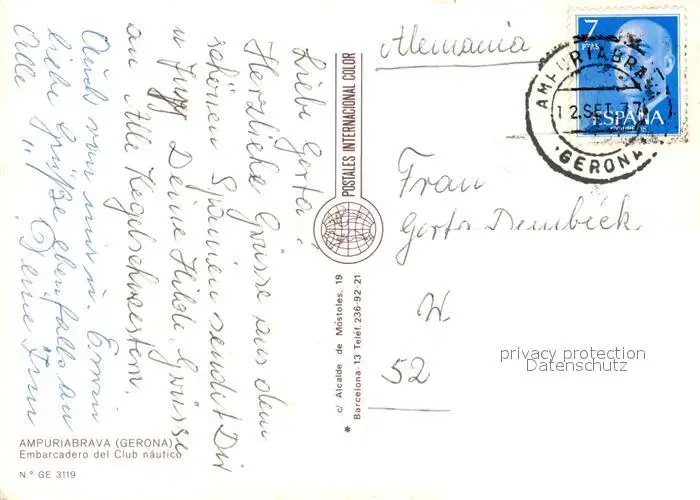 Ampuriabrava Embarcadero del Club náutico Ampuriabrava postalisch gelaufen 1977 Erhaltung siehe scans [FriedD77] Frierer