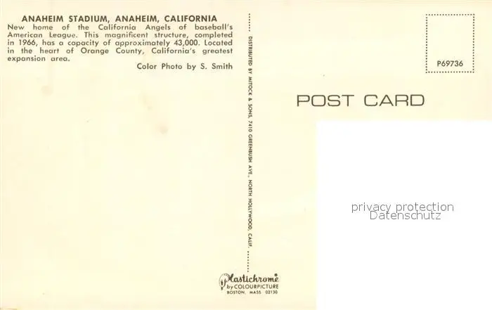 Anaheim Stadium Home of The California Angels postalisch nicht gelaufen nach 1965 Erhaltung siehe scans [WerneD78] WernPID7