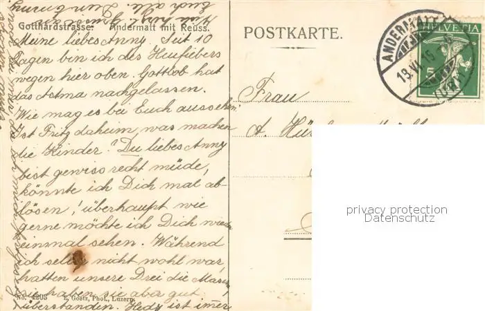 Andermatt_UR mit Reuss und Gotthardstrasse postalisch gelaufen 1915 Erhaltung siehe scans [WerneD78] WernPID7