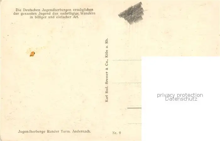 Andernach Jugendherberge Runder Turm Andernach postalisch nicht gelaufen 1921-1965 Erhaltung siehe scans [WerneD78] WernPID7