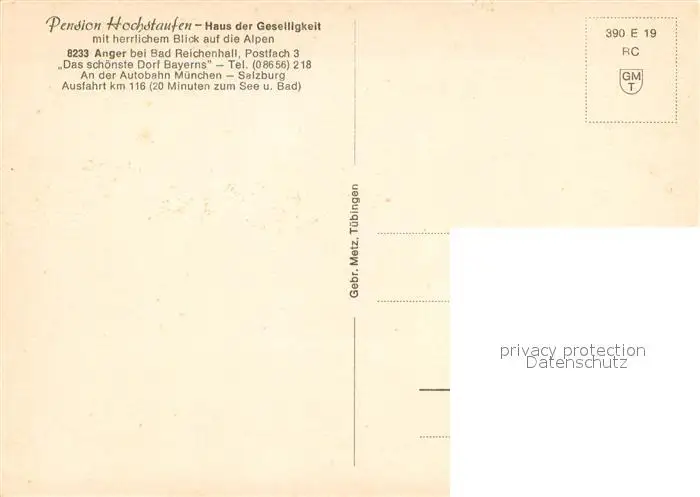 Anger_Bad_Reichenhall Pension Hochstaufen postalisch nicht gelaufen nach 1965 Erhaltung siehe scans [WerneD78] WernPID7