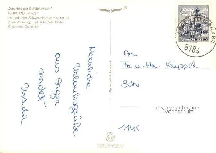 Anger_Steiermark Fliegeraufnahme Anger_Steiermark postalisch gelaufen nach 1965 Erhaltung siehe scans [WerneD78] WernPID7