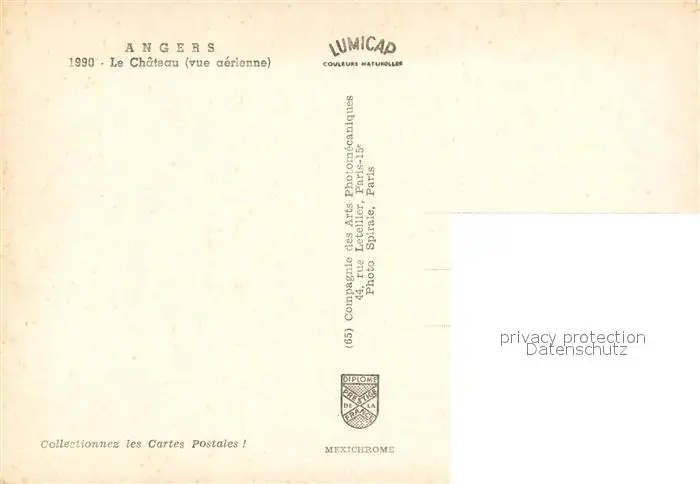 Angers Château vue aérienne Angers postalisch nicht gelaufen nach 1965 Erhaltung siehe scans [FriedD77] Frierer