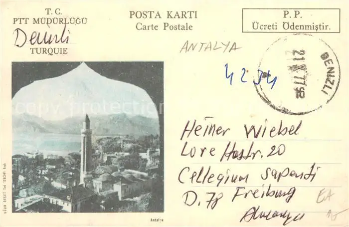 Antalya_TK Panorama postalisch gelaufen 1977 Erhaltung siehe scans [WerneD78] WernPID7