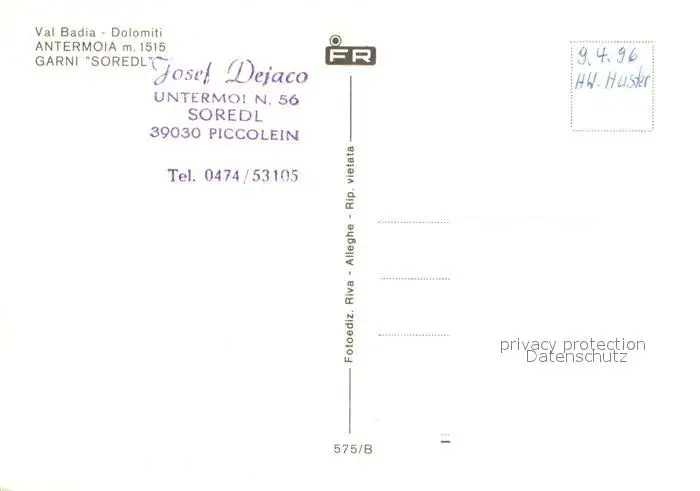 Antermoia Garni Soredl Antermoia postalisch nicht gelaufen 1996 Erhaltung siehe scans [WerneD78] WernPID7