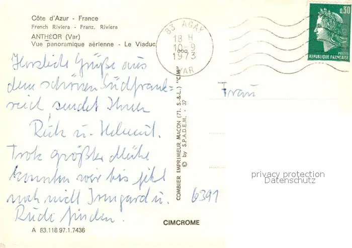 Antheor le viaduc vue aérienne Antheor postalisch gelaufen 1973 Erhaltung siehe scans [FriedD77] Frierer