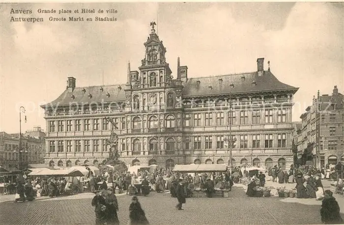 Anvers_Antwerpen Groote Markt en Stadhuis Anvers Antwerpen postalisch nicht gelaufen bis 1920 Erhaltung siehe scans [LiesaD40] LiesID40