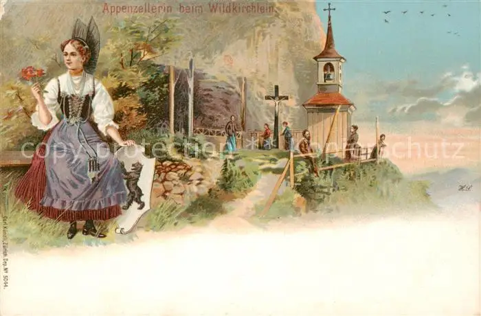 AK / Ansichtskarte Appenzell_IR Appenzellerin beim Wildkirchlein Appenzell IR
