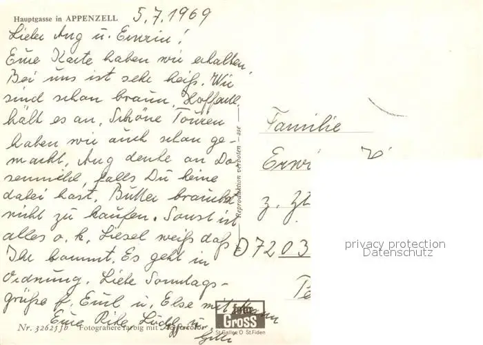 Appenzell_IR Hauptgasse Appenzell IR postalisch gelaufen 1969 Erhaltung siehe scans [WerneD78] WernPID7