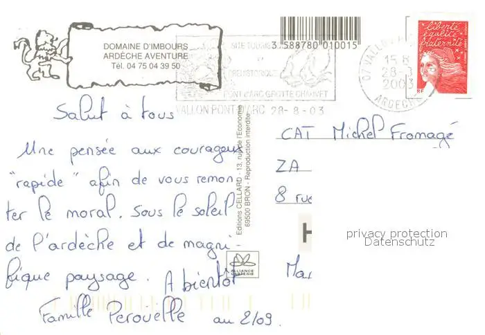 Ardeche Region Domaine d’Imbours Vue aerienne postalisch gelaufen 2003 Erhaltung siehe scans [WerneD78] WernPID7