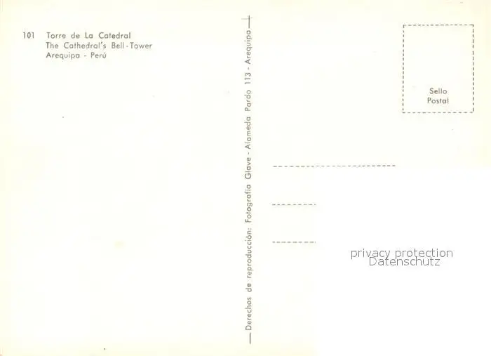 Arequipa Torre de la Catedral Arequipa postalisch nicht gelaufen nach 1965 Erhaltung siehe scans [WerneD78] WernPID7