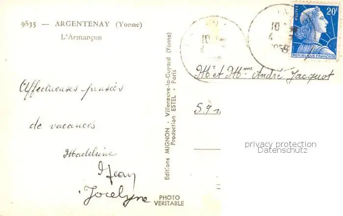 Argentenay Armancon Argentenay postalisch gelaufen 1959 Erhaltung siehe scans [WerneD78] WernPID7
