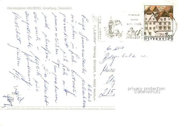 Arlberg Wandergebiet Vorarlberg Arlberg postalisch gelaufen 2003 Erhaltung siehe scans [LiesaD40] LiesID40