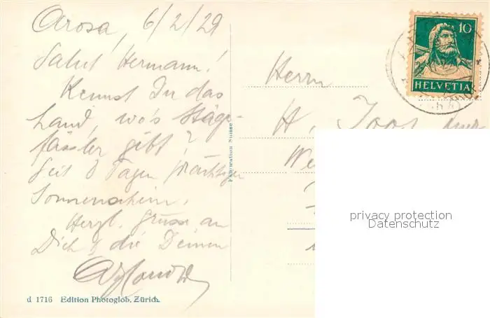 Arosa_GR Arosa_GR postalisch gelaufen 1929 Erhaltung siehe scans [LiesaD40] LiesID40