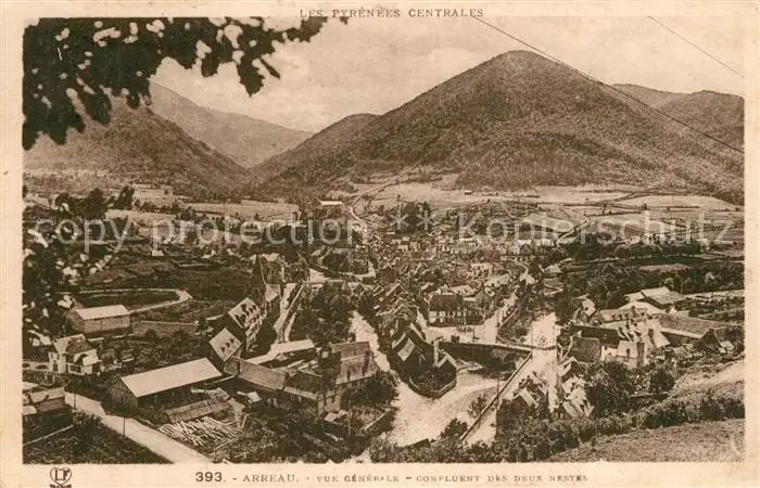 Arreau Panorama Confluent des deux Nestes Arreau postalisch gelaufen 1945 Erhaltung siehe scans [FriedD77] Frierer