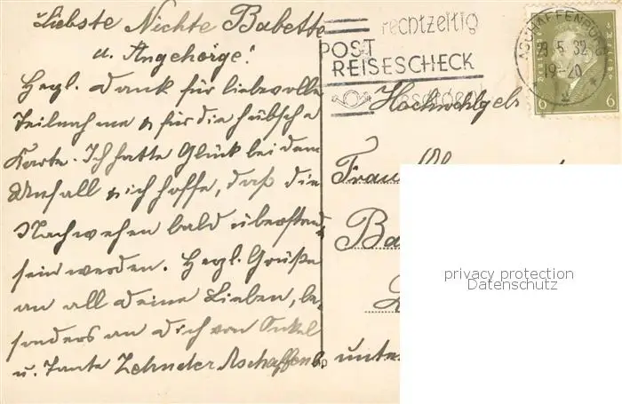 Aschaffenburg_Main Sandtor Aschaffenburg Main postalisch gelaufen 1932 Erhaltung siehe scans [FriedD77] Frierer