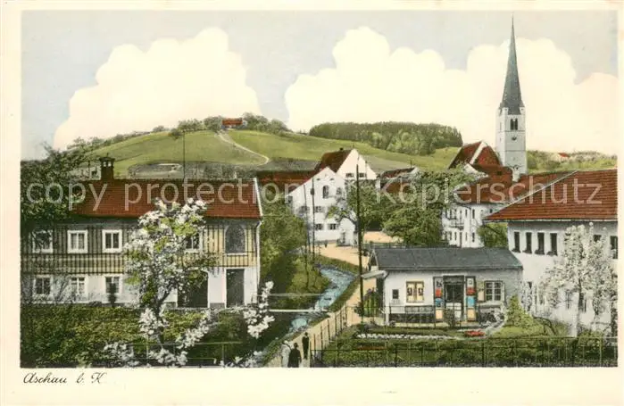 Aschau_Tirol Teilansicht mit Kirche Aschau Tirol postalisch nicht gelaufen 1921-1965 Erhaltung siehe scans [WerneD78] WernPID7