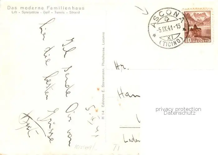 Ascona_Lago_Maggiore_TI Albergo Ascona postalisch gelaufen 1941 Erhaltung siehe scans [FriedD77] Frierer
