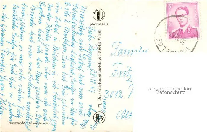 Assenede Gemeentehuis Assenede postalisch gelaufen 1967 Erhaltung siehe scans [FriedD77] Frierer