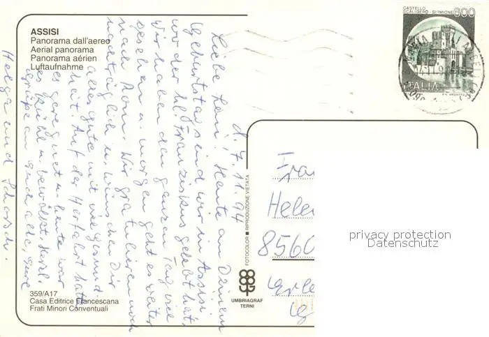 Assisi_Umbria Panorama dall aereo Assisi Umbria postalisch gelaufen 1994 Erhaltung siehe scans [FriedD77] Frierer