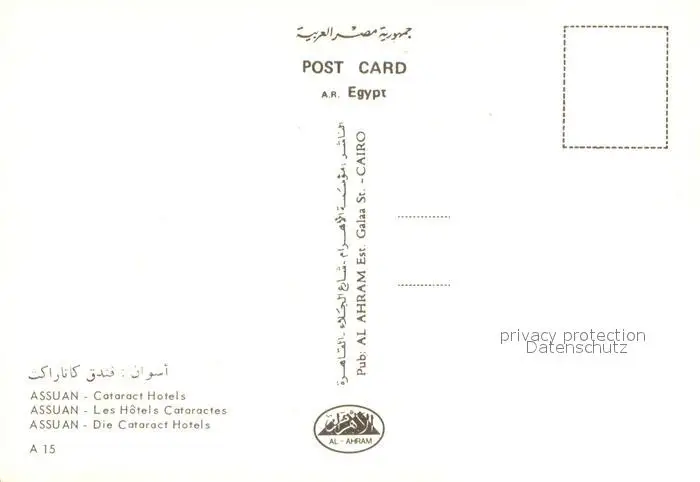 Assuan Cataract Hotels Assuan postalisch nicht gelaufen nach 1965 Erhaltung siehe scans [WerneD78] WernPID7