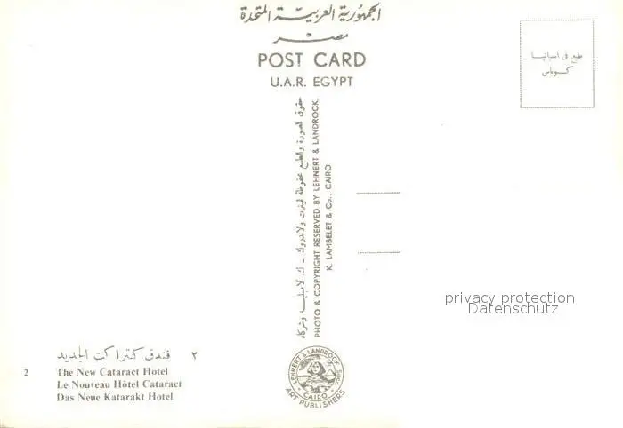 Aswan New Cataract Hotel Aswan postalisch nicht gelaufen nach 1965 Erhaltung siehe scans [PaolaD17] PaolPID1