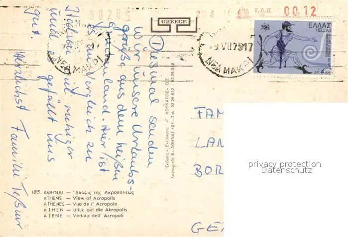 Athenes_Athen Akropolis Athenes Athen postalisch gelaufen nach 1965 Erhaltung siehe scans [LiesaD40] LiesID40