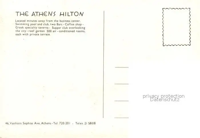 Athens_Athen The Athens Hilton aerial view Athens Athen postalisch nicht gelaufen nach 1965 Erhaltung siehe scans [FriedD77] Frierer