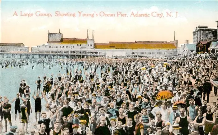 AK / Ansichtskarte Atlantic_City_New_Jersey A large Groupe showing Youngs Ocean Pier