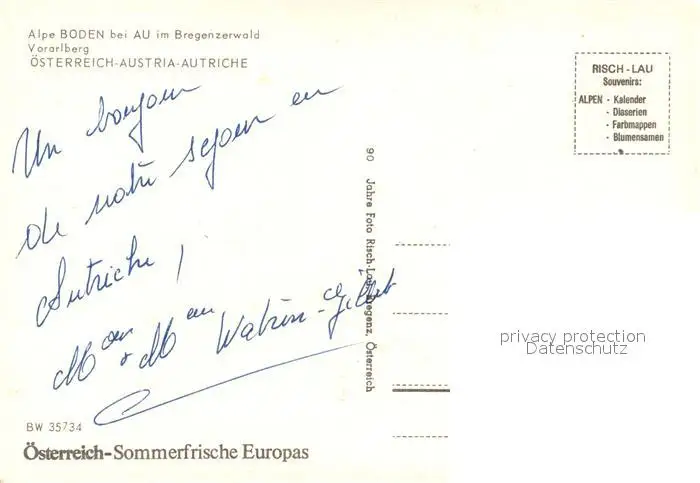 Au_Bregenzerwald Alpe Au_Bregenzerwald postalisch nicht gelaufen nach 1965 Erhaltung siehe scans [KathaD81] Kathoren