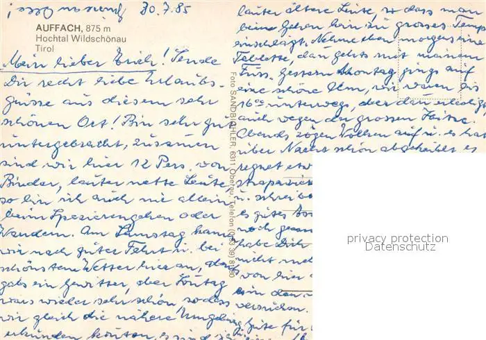 Auffach Hochtal Wildschoenau Auffach postalisch nicht gelaufen 1985 Erhaltung siehe scans [WerneD78] WernPID7