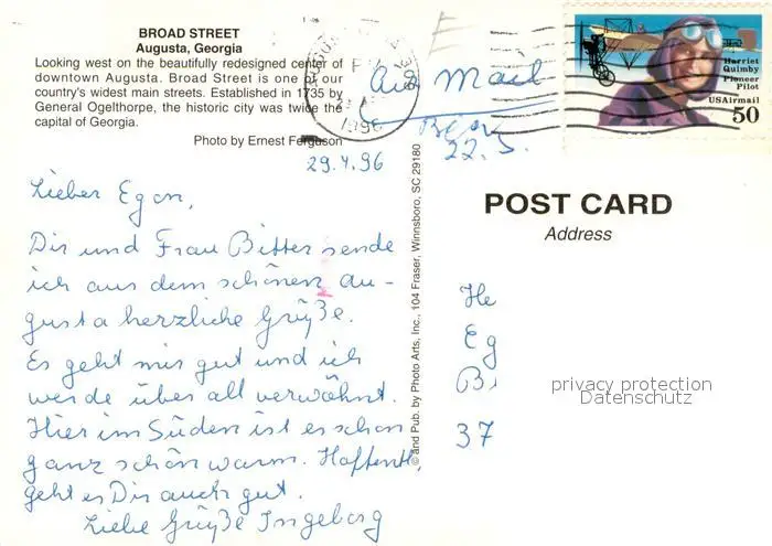 Augusta_Georgia Broad Street postalisch gelaufen 1996 Erhaltung siehe scans [LiesaD40] LiesID40