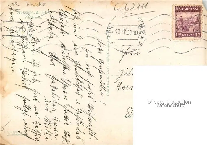 Aussig_Tschechien Stadttheater Aussig Tschechien postalisch gelaufen 1921-1965 Erhaltung siehe scans [PaolaD17] PaolPID1