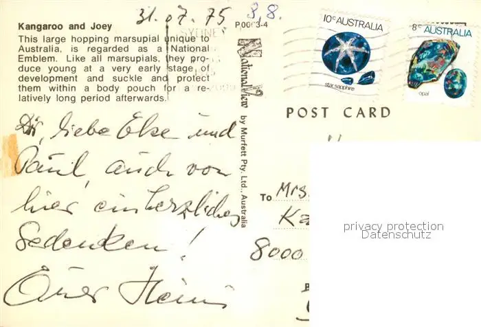 Australien Kangaroo and Joey Australien postalisch gelaufen 1975 Erhaltung siehe scans [WerneD78] WernPID7