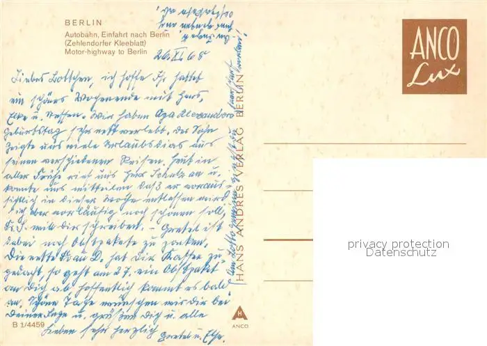 Autobahn Berlin postalisch nicht gelaufen 1968 Erhaltung siehe scans [PaolaD17] PaolPID1