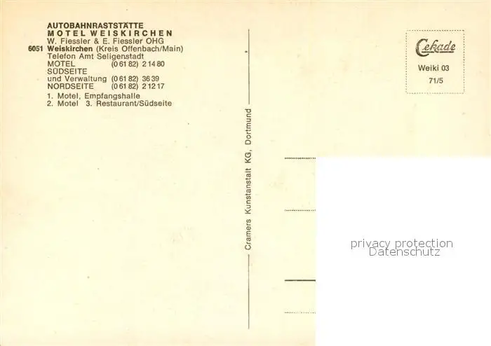 Autobahn Rastst?tte-Motel Weiskirchen postalisch nicht gelaufen nach 1965 Erhaltung siehe scans [PaolaD17] PaolPID1
