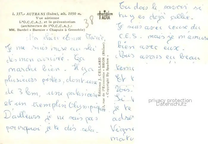 Autrans Vue aerienne L’OCCAJ et le preventorium Autrans postalisch nicht gelaufen nach 1965 Erhaltung siehe scans [WerneD78] WernPID7