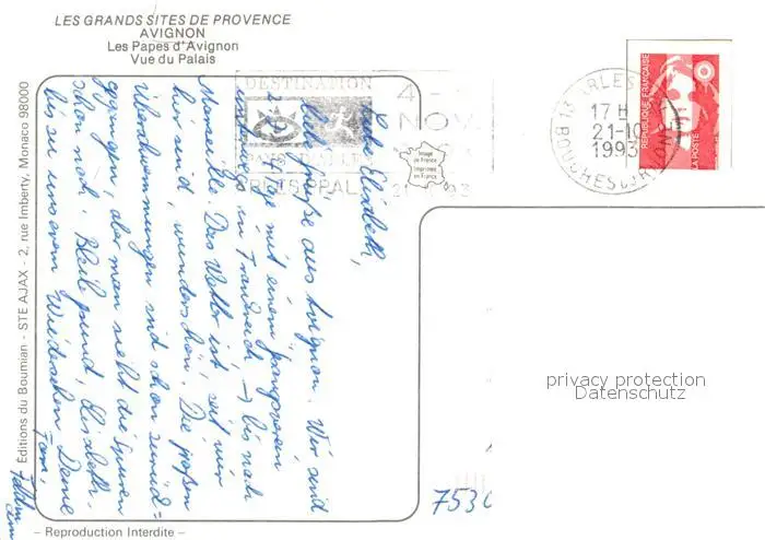 Avignon_Vaucluse Les Papes d’Avignon Vue du Palais Avignon Vaucluse postalisch gelaufen 1993 Erhaltung siehe scans [WerneD78] WernPID7
