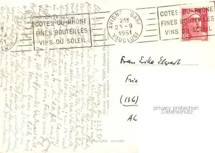Avignon_Vaucluse Vue aerienne Avignon Vaucluse postalisch gelaufen 1951 Erhaltung siehe scans [WerneD78] WernPID7