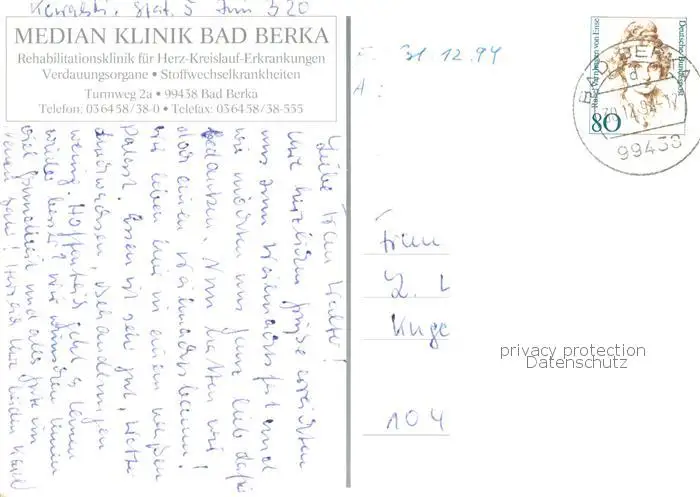 Bad_Berka Median Klinik Bad_Berka postalisch gelaufen 1994 Erhaltung siehe scans [WerneD78] WernPID7