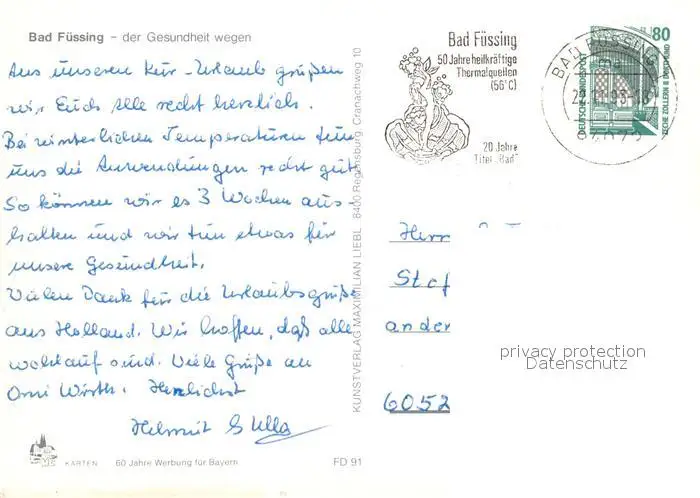 Bad_Fuessing Bad_Fuessing postalisch gelaufen 1993 Erhaltung siehe scans [NatalD47] NataID47