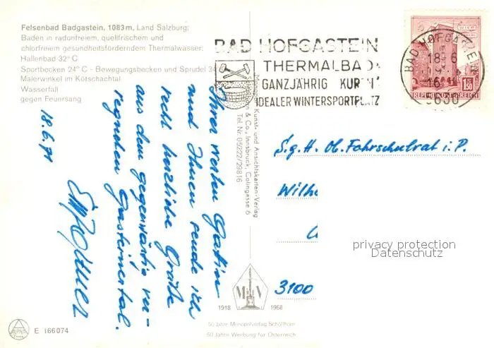 Bad_Gastein Felsenbad Wasserfall Bad_Gastein postalisch gelaufen nach 1965 Erhaltung siehe scans [LiesaD40] LiesID40