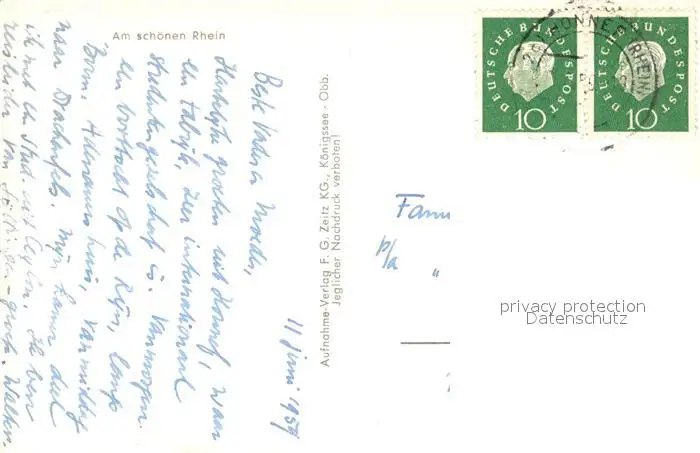 Bad_Honnef Panorama mit Drachenfels Bad_Honnef postalisch gelaufen 1959 Erhaltung siehe scans [WerneD78] WernPID7