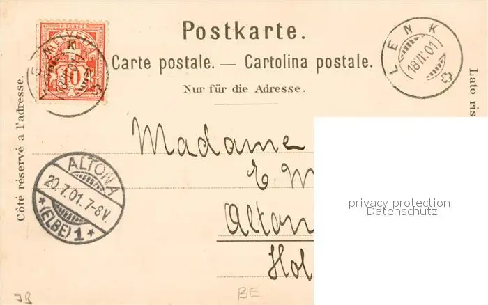 Bad_Lenk_Simmental_BE Teilansicht m. Frau a. d. Simmental postalisch gelaufen 1901 Erhaltung siehe scans [LiesaD40] LiesID40