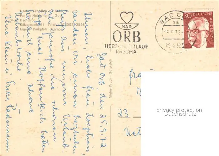Bad_Orb Haus Fernblick Panorama Bad_Orb postalisch gelaufen 1972 Erhaltung siehe scans [FriedD77] Frierer
