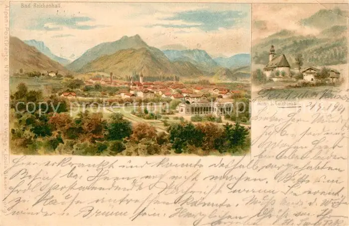 Bad_Reichenhall Kategorie Alte Ansichtskarten Postkarten bx84247 Bad_Reichenhall Panorama Bad_Reichenhall postalisch gelaufen 1901 Erhaltung siehe scans [WerneD78]