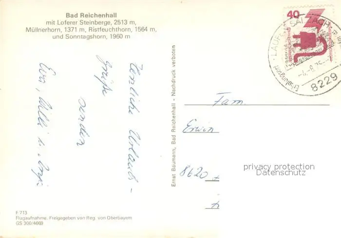 Bad_Reichenhall mit Loferer Steinberge Bad_Reichenhall postalisch gelaufen 1975 Fliegeraufnahme Erhaltung siehe scans [FriedD77] Fliegeraufnahme Frierer